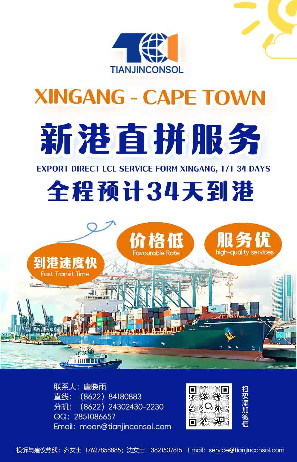 XINGANG→CAPE TOWN直拼服務(wù) 到港快 運(yùn)價(jià)優(yōu)