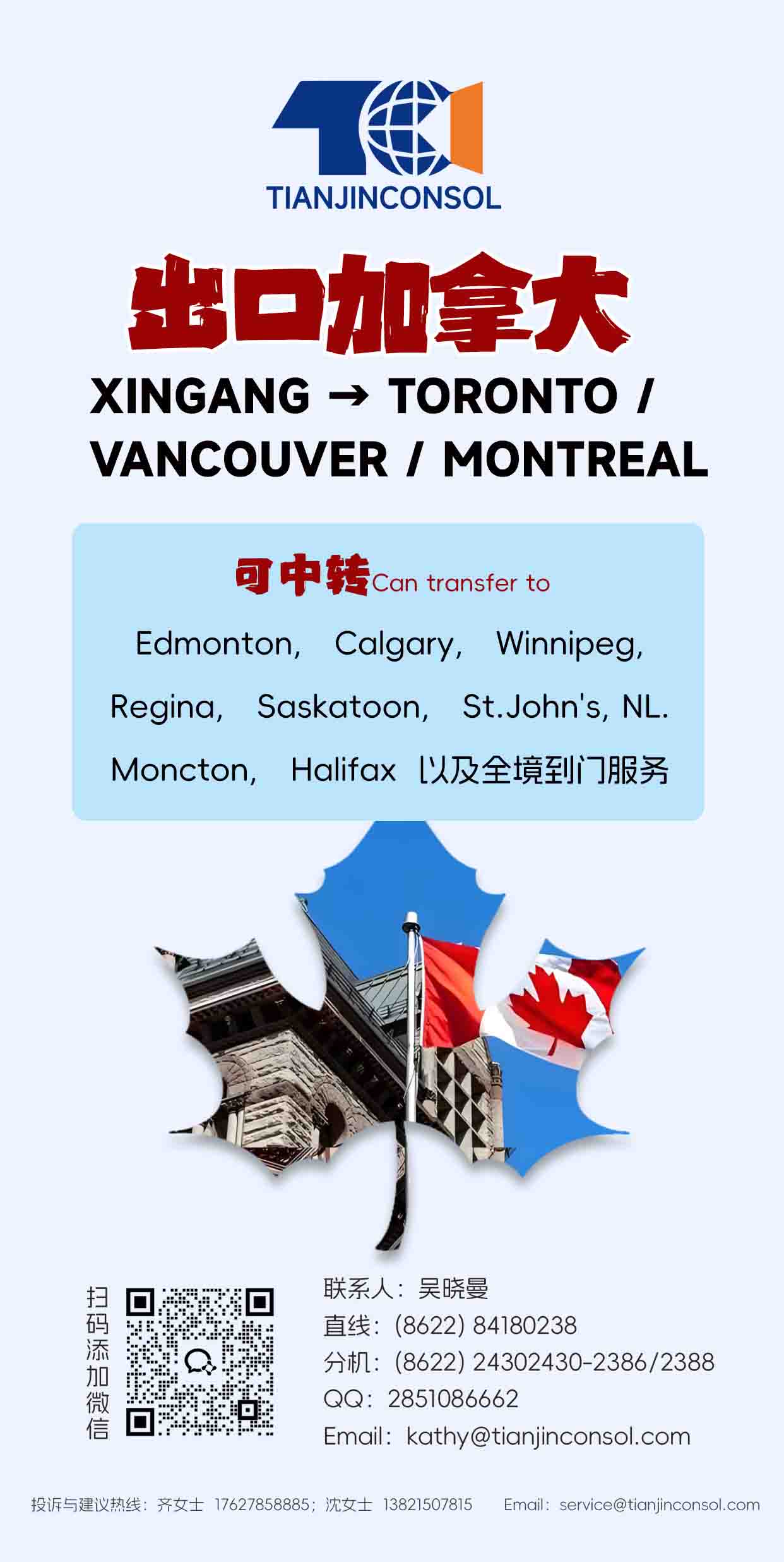 臺出口加拿大 多港可轉(zhuǎn) 可提供全境到門服務