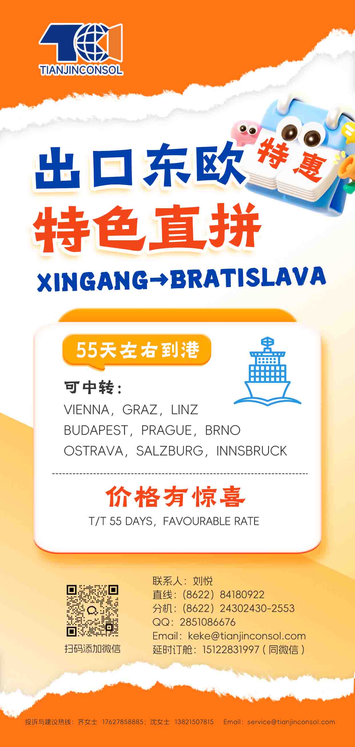 XINGANG→BRATISLAVA特色直拼 價(jià)格優(yōu)惠 多港可轉(zhuǎn)