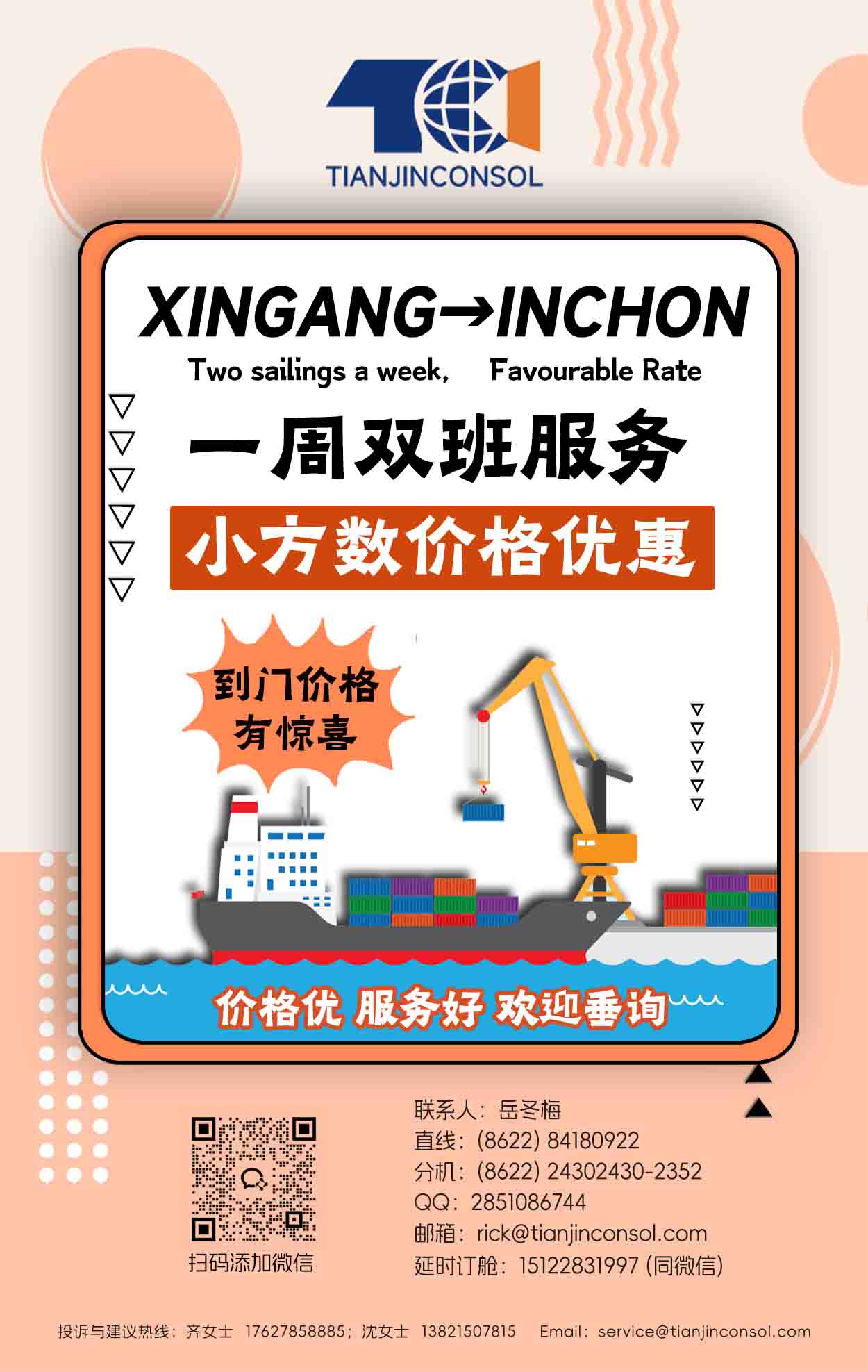 XINGANG→INCHON價優(yōu)服務(wù)好 雙11活動持續(xù)中