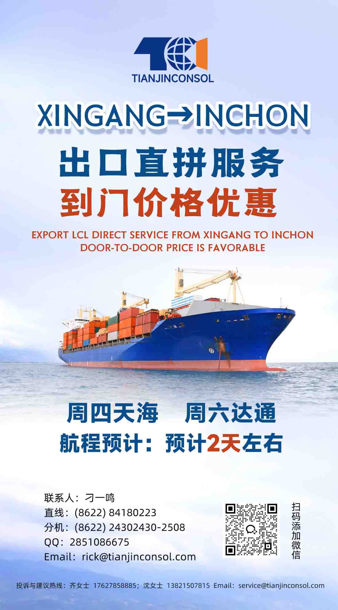 XINGANG→INCHON直拼服務(wù) 到門價(jià)格優(yōu)惠